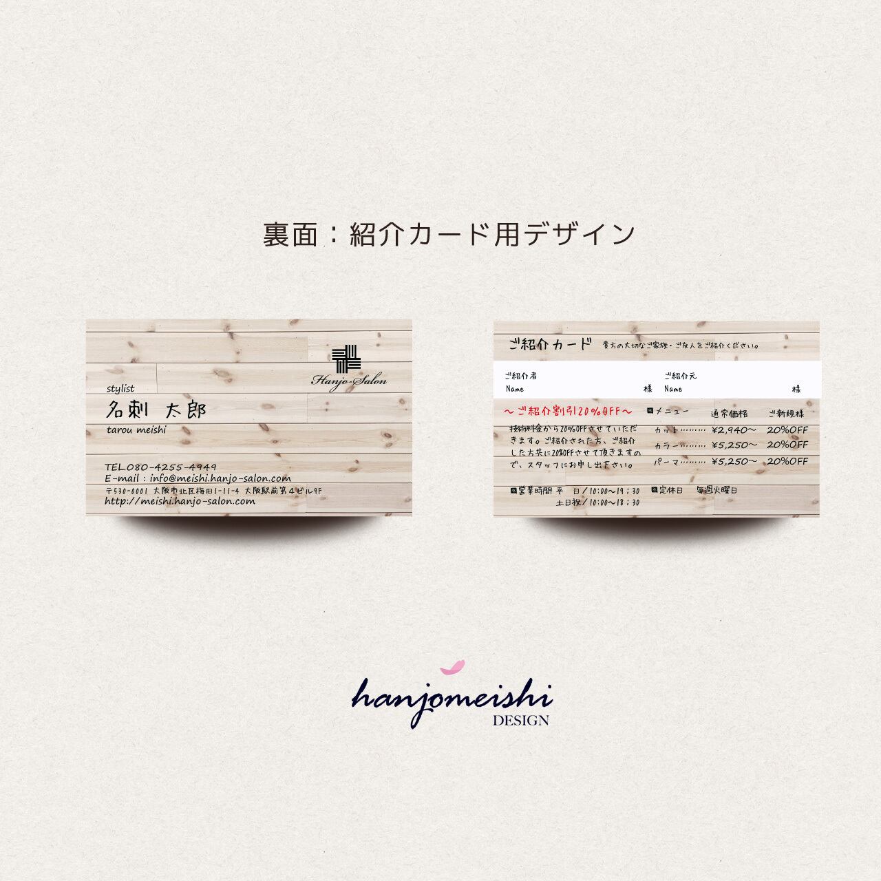 表面・裏面デザインに関してはあくまでサンプルとして掲載しておりますので、文章や写真は自由に変更できます。またロゴマーク・QRコード・なども自由に掲載できます。