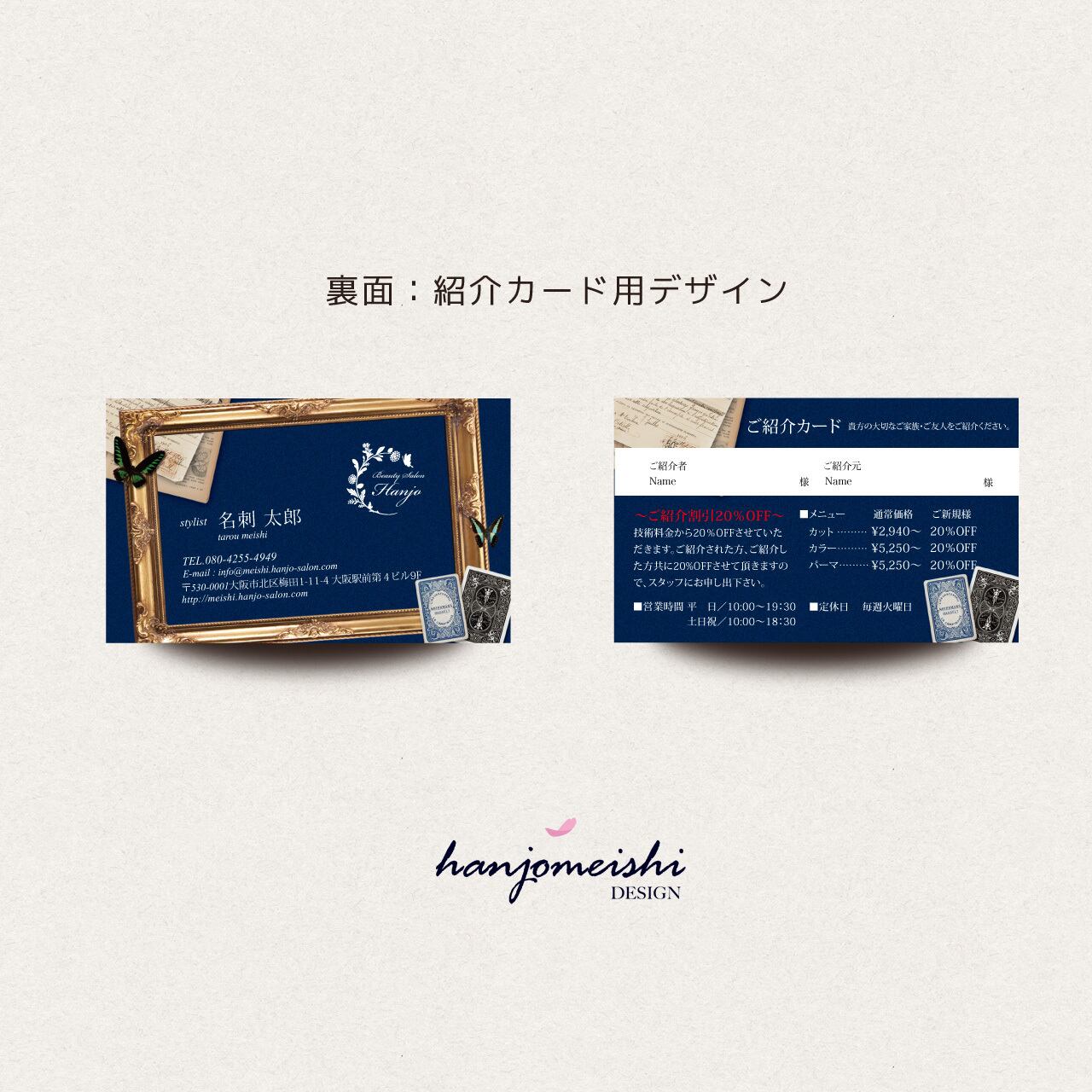 表面・裏面デザインに関してはあくまでサンプルとして掲載しておりますので、文章や写真は自由に変更できます。またロゴマーク・QRコード・なども自由に掲載できます。