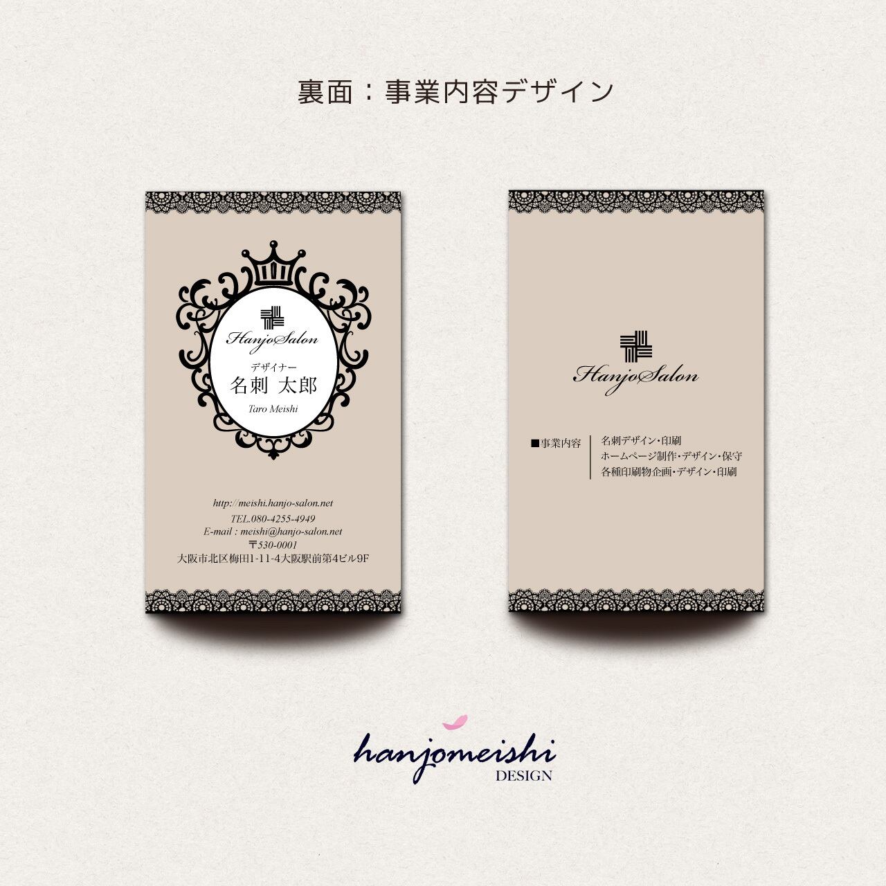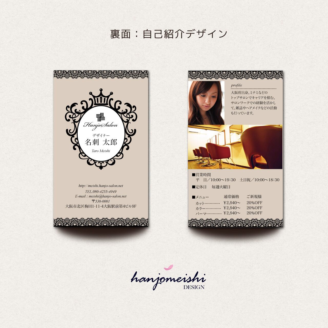 表面・裏面デザインに関してはあくまでサンプルとして掲載しておりますので、文章や写真は自由に変更できます。またロゴマーク・QRコード・なども自由に掲載できます。