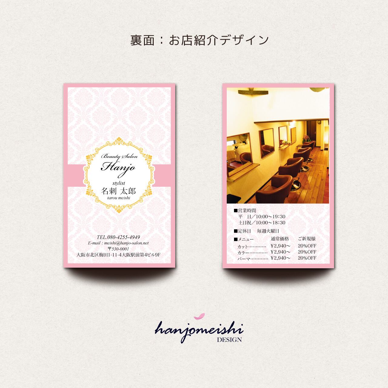 表面・裏面デザインに関してはあくまでサンプルとして掲載しておりますので、文章や写真は自由に変更できます。またロゴマーク・QRコード・なども自由に掲載できます。